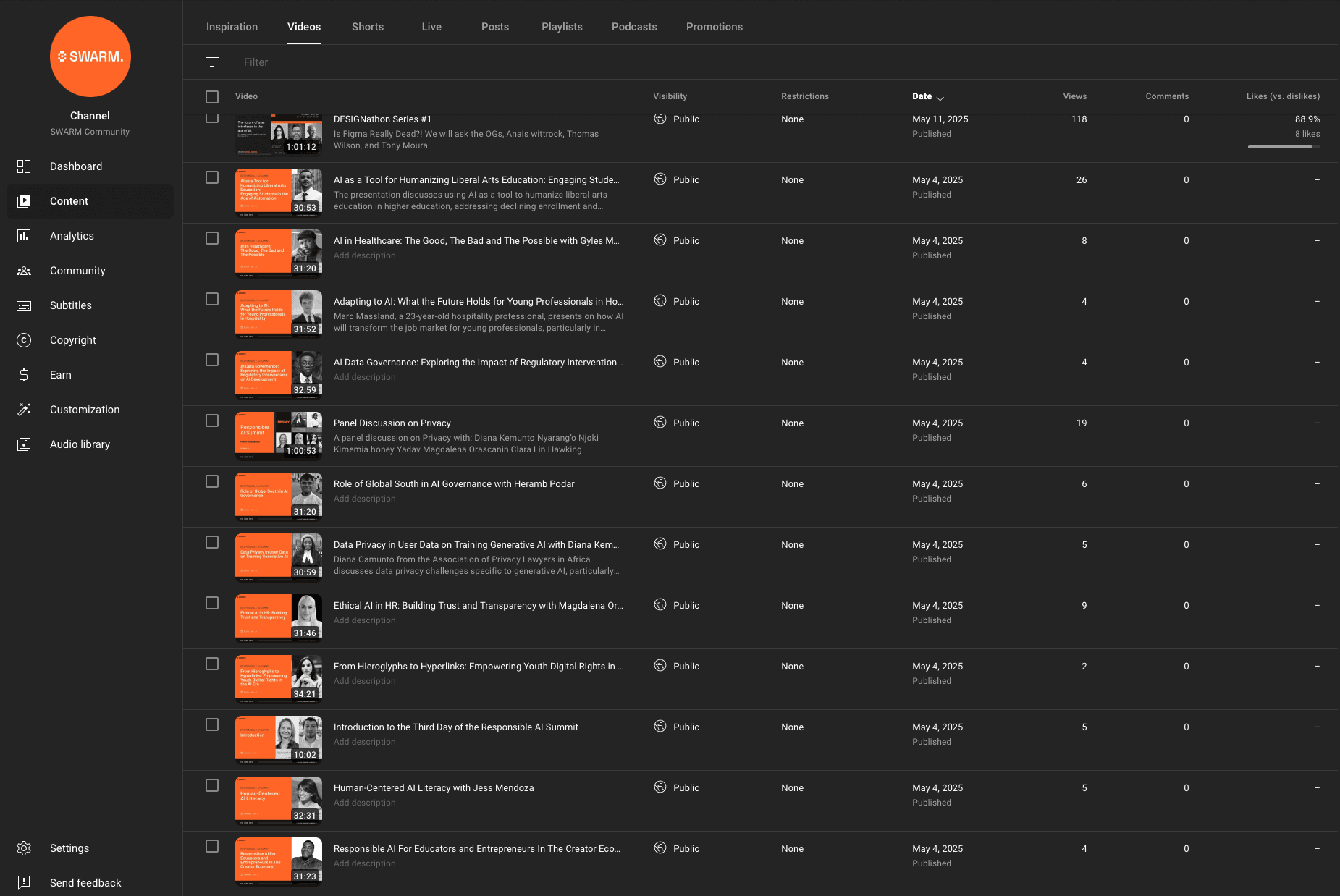 So many videos uploaded on SWARM's YouTube channel without being tagged and having a description.
