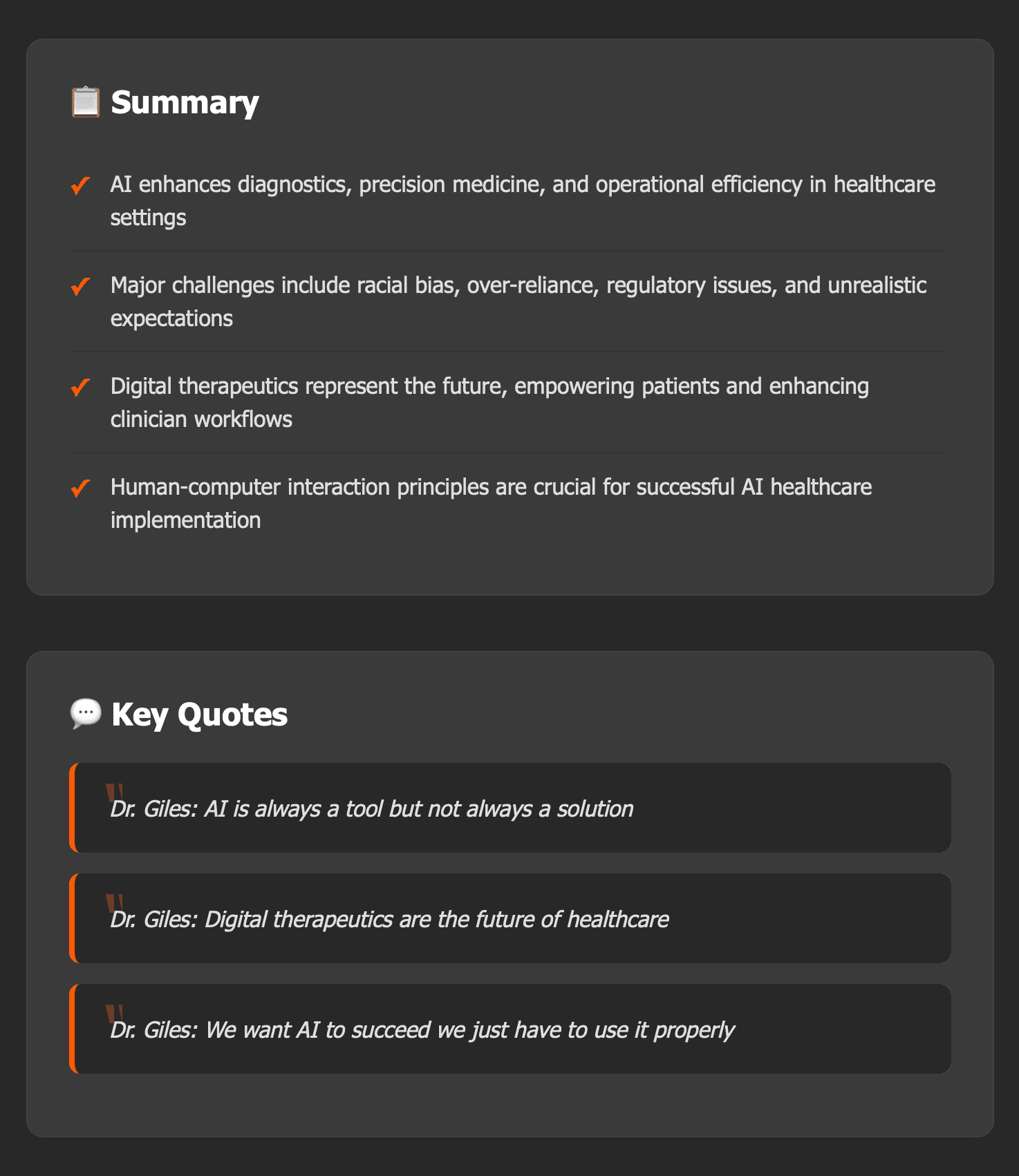 Next thing I would do is to improve the quality of the summaries and quotes, as I’ve noticed issues like misspelled speaker names and unclear or inaccurate quotes.