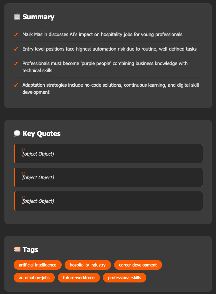 NGL, I've faced so many backend errors, API problems and low quality summaries and tags during the process that I was getting disappointed on getting it done. There is still more to be done to get better quality.